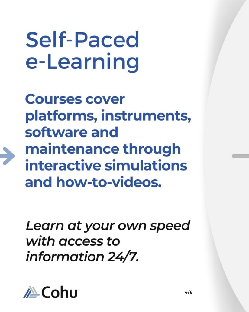 EducATE contains an extensive list of courses covering platforms, instruments, software, and maintenance. The training provides and overview of the instrument, the theory of operation, accessing the help menu, and some simple test examples through a combination of interactive simulation and how-to videos provide tools. Typical duration 2-3 hours depending on skill level.