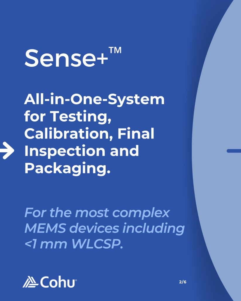 Sense+ next generation automation platform for MEMS & Sensor is optimized for high test requirements and small and sensitive devices, achieving high throughput even for MEMS devices that require longer test times.